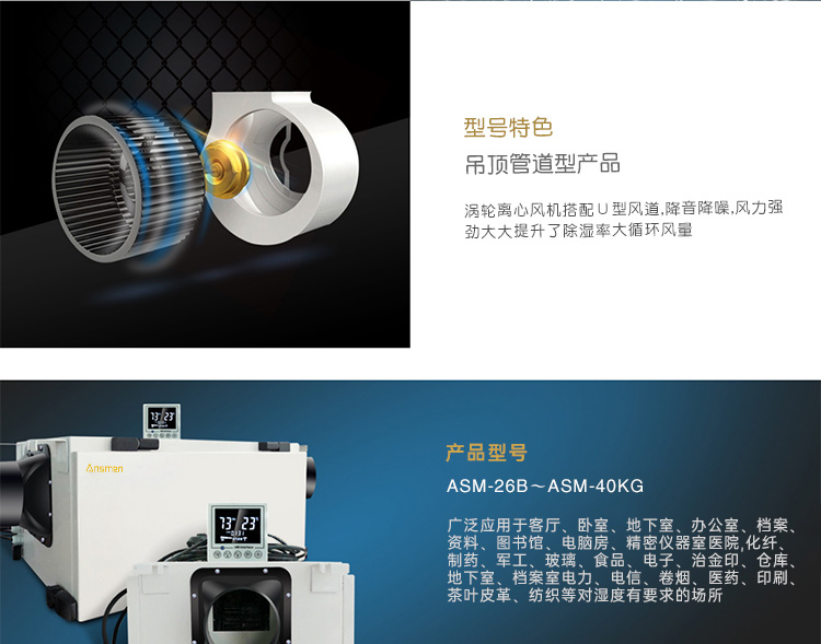 安詩曼是專業吊頂管道工業除濕機生產廠家,主要產品有工業除濕機,高溫烘干機,轉輪除濕機,低溫除濕機,吊頂除濕機,商用抽濕機,商用除濕機,工業抽濕機,工業干燥機等產品